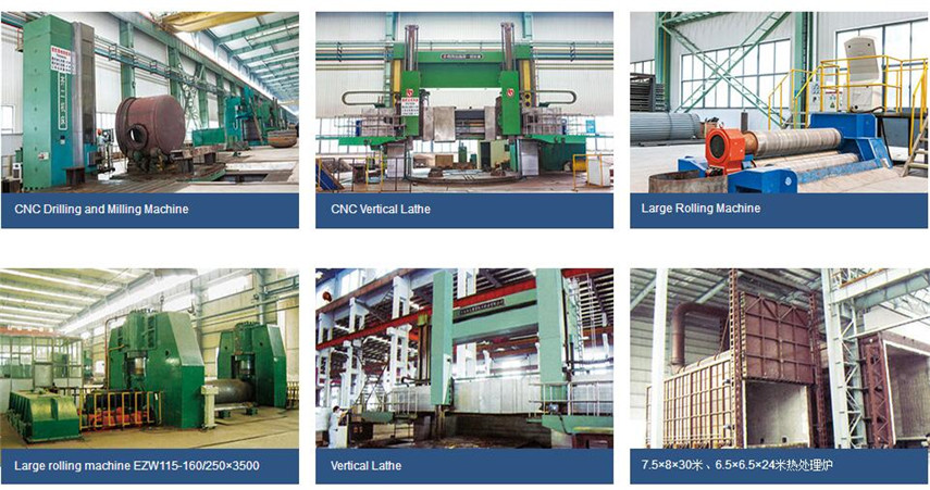 Workshop with 1100 sets of production equipment, has ∮32-∮76 serpentine tube production lines and membrane wall spell row welding machine, driving maximum lifting capacity of 700 tons. Cold roll 180mm / 250mm thickness hot rolled heavy plate bending machine, (8m × 8m × 30m, 800 ℃) overall heat treatment furnace; has a large testing room, equipped with a high temperature of 1000 ℃ electronic testing machine, 6MeV electron linear accelerator, wear through capacity 250mmy ray; owned Lincoln welding machine with a pole, deep butt welded plate automatic welding machine, a small bore pipe welding machine; metalworking shop with CKX511000 type vertical lathe, CNC vertical lathe sizes up φ6.3m * 4m, 4m long gantry CNC deep hole drilling and boring spindle stroke 12m TJK6P20A NC φ200mm floor boring and milling machine and other advanced heavy processing equipment.