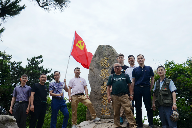 2019年7月13日上午8點(diǎn),海陸重工黨員先鋒隊(duì)成員共計(jì)十六人,沿著72年前革命先烈的道路,從大別山北麓險(xiǎn)道龍脊背攀登,與當(dāng)日中午12點(diǎn)左右全員登頂,歷時(shí)四個(gè)小時(shí)。