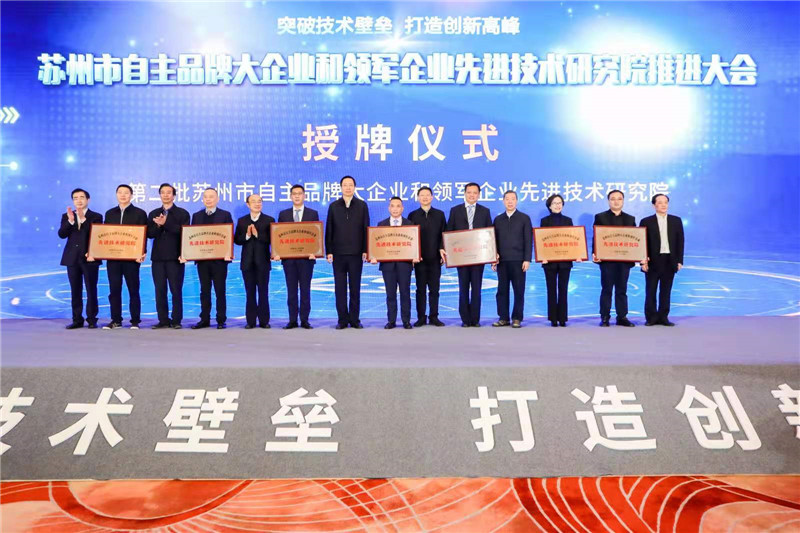 2019年12月21日,徐元生董事長率隊(duì)參加了由蘇州市委、市政府組織召開的第二批蘇州自主品牌大企業(yè)和領(lǐng)軍企業(yè)先進(jìn)技術(shù)研究院推進(jìn)大會(huì),并榮獲市政府授牌蘇州市大企業(yè)和領(lǐng)軍企業(yè)先進(jìn)技術(shù)研究院。