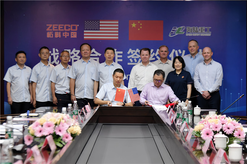 8月23日,蘇州海陸重工股份有限公司與柘科(中國)工程設(shè)備有限公司簽署戰(zhàn)略合作協(xié)議。美國ZEECO全球總裁及首席執(zhí)行官Darton Zink先生率領(lǐng)高級副總裁Terry W. Dark、制造總監(jiān)Darrell Thomas、市場和業(yè)務(wù)總監(jiān)Brent Williamson、東南亞分公司總經(jīng)理Anand Gokhale、柘科(中國)總經(jīng)理馬原及管理團隊,海陸重工董事長徐元生、總經(jīng)理徐冉等公司主要領(lǐng)導共同出席戰(zhàn)略合作簽約儀式。